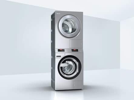 Ved begrænset plads på opstillingsstedet, er det et problem at placere vaskemaskinen og tørretumbleren ved siden af hinanden. I det tilfælde tilbyder Miele Professional med den optimale løsning med vaske-/tørresøjlen: 2 effektive maskiner på under 1 m2 plads.