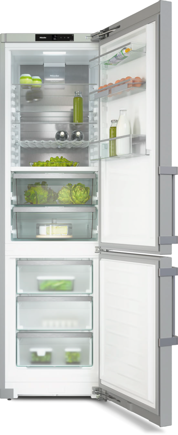 - Kold og ren: Takket være CleanSteel- bagvæggen fordeler kulden sig optimalt i dit Miele-køleskab.